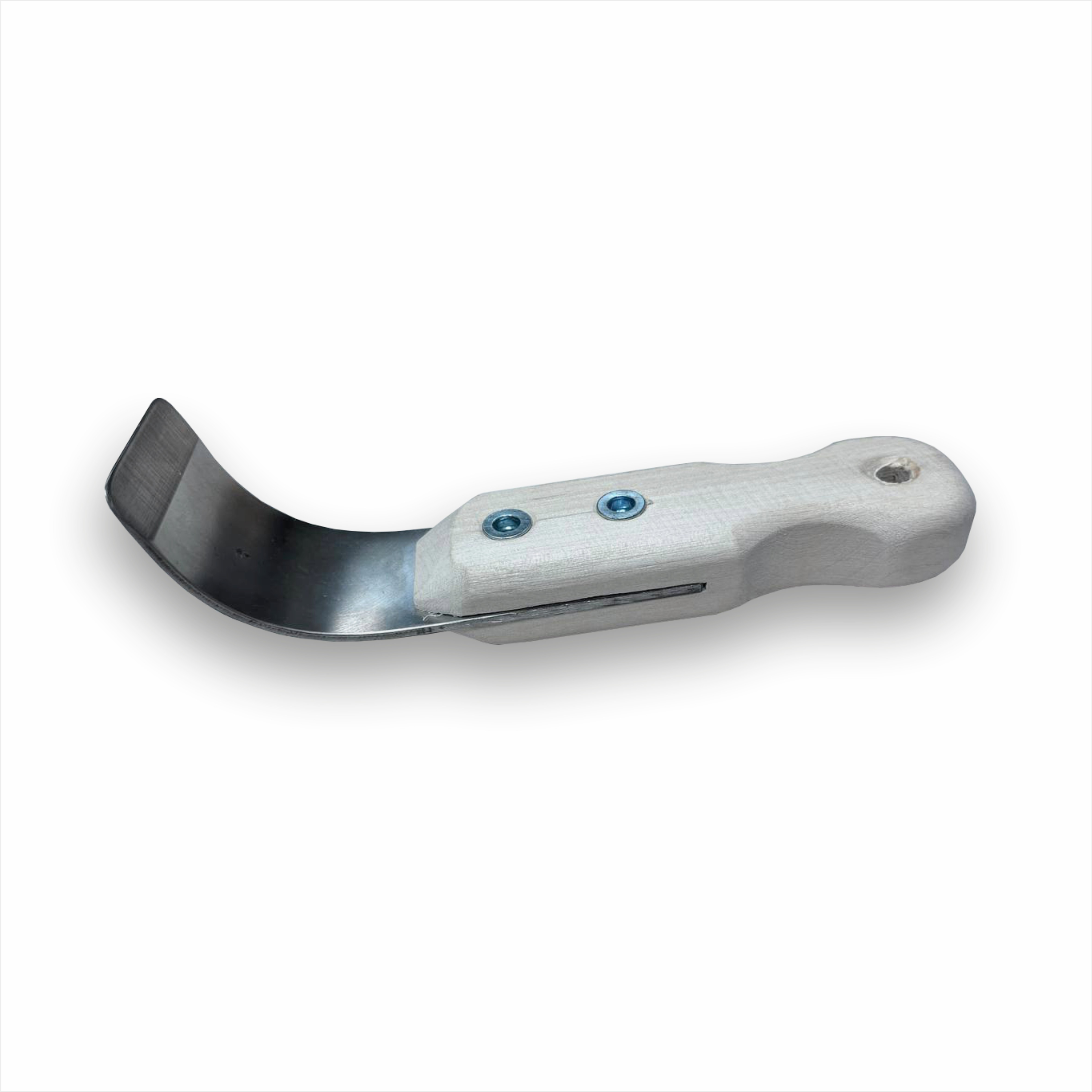 Лопатка для монтажа гарпуна в бесщелевой, двухуровневый профиль (Гиб 45° по окружности)Длина ручки: 9смШирина металла: 3,4см Толщина металла: 2мм