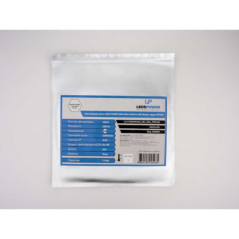 22Вт/м, холодная, 24В, 240/м (30м/кат) Светодиодная лента LEDS POWER 2835 Серия ПРО 140