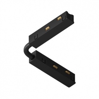 Используется в случае соединения двух треков между собой, когда нужно перевести низковольтное питание. Благодаря гибкой конструкции устанавливается не только по прямой, но и в угловых соединениях. Выполнен из чёрного пластика с токопроводящими медными контактами и после установки в трек абсолютно незаметен.