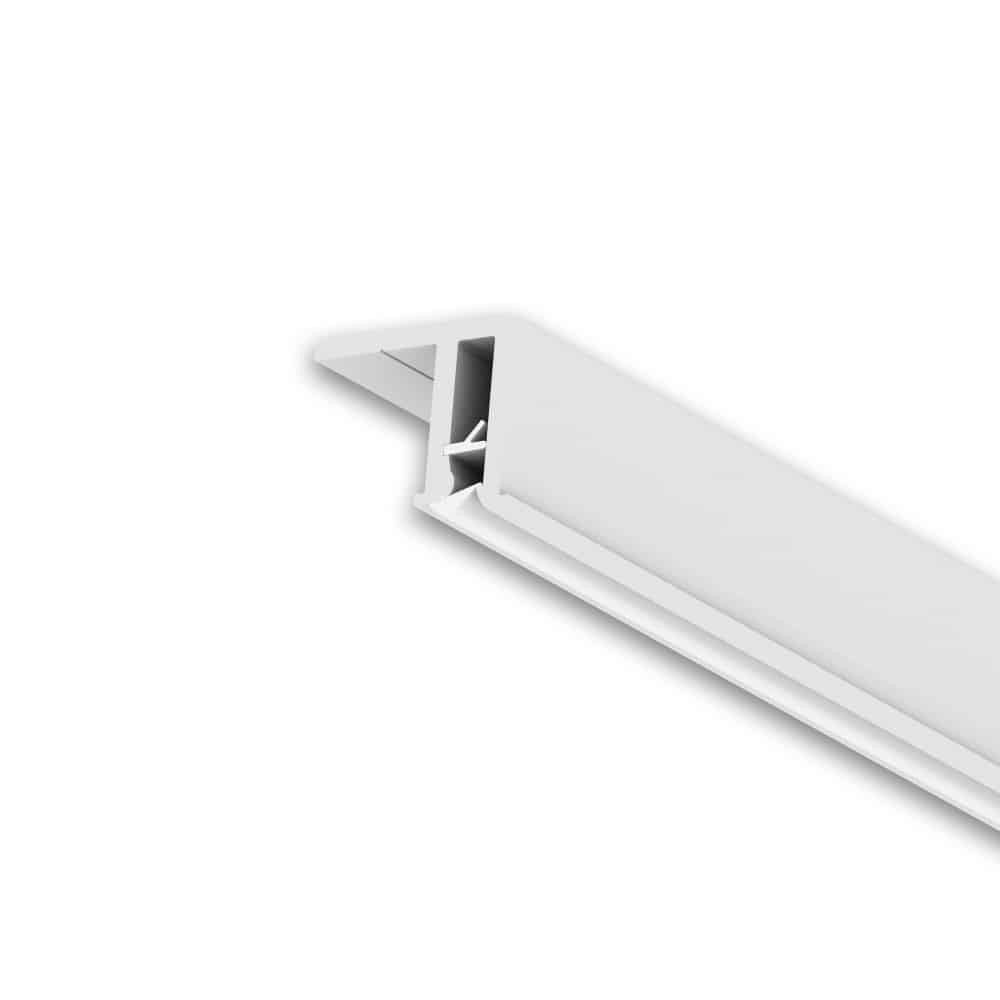 Профиль ПВХ, потолочная прищепка. Используется для установки натяжных потолков из ткани, а также матовых пвх пленок. Для фиксации полотна в профиле предусмотрено 2 замка, в начале и в середине, которые имеют жесткую и мягкую часть для удобства монтажа/демонтажа. Заправить полотно в профиль можно специальным шпателем.