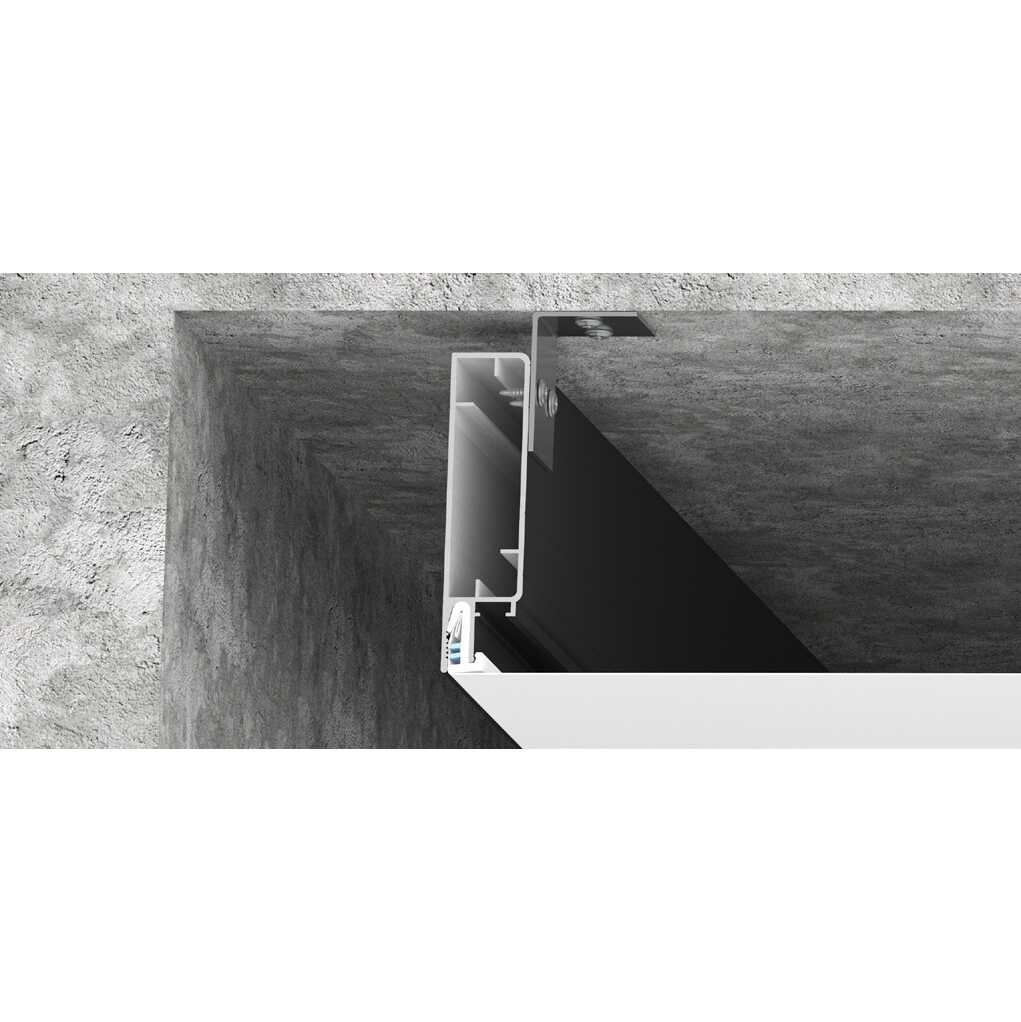 При помощи профиля Level 90 монтируется потолок из тканевых или ПВХ материалов с переходом уровня высотой 90 мм с видимой вертикальной частью профиля черного или белого цвета. Конструкция профиля предусматривает возможность использования опционального профиля Clamp Top для фиксации верхнего уровня полотна при помощи системы крепления Clamp, которая предназначена для монтажа любых тканевых и ПВХ материалов.