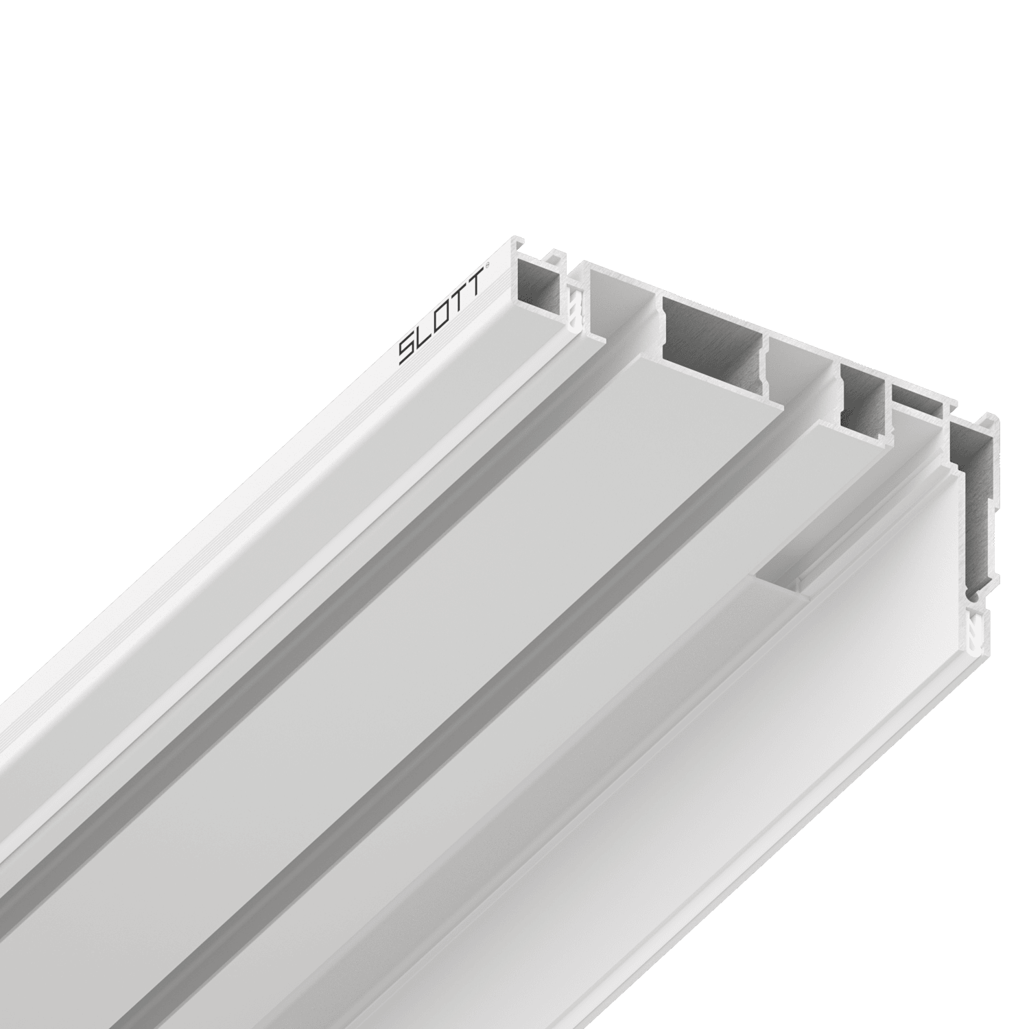 Система SLOTT Parsek — механический двухрядный карниз. Первый ряд предназначен для штор, второй для тюля. Профиль выполнен из цельного алюминия. Карнизная система образует нишу благодаря специально разработанному выступающему краю. Таким образом, бегунки скрыты от глаз, видимой частью остается только сама штора. Профиль поставляется в комплекте с демпфером