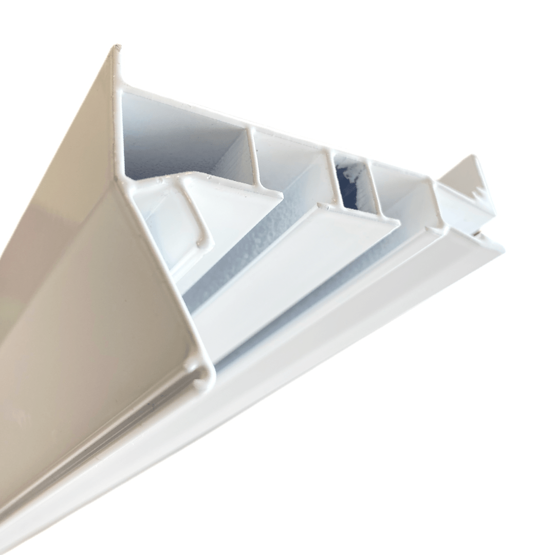 Профиль ПК-15 карниз предназначен для скрытого крепления штор и изготовления ниш под карниз потолочного крепления. Отличается от ПК-5 тем, что имеет два ряда креплений штор. Профиль стыкуется со стандартным стеновым багетом, а также с системами контурного потолка. В процессе монтажа крепится на металлические уголки к основному потолку.