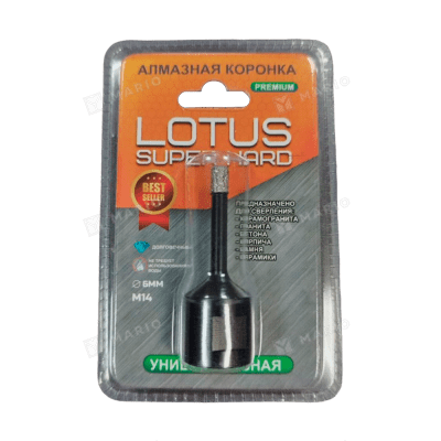 Коронка алмазная по керамограниту - изготовлена методом вакуумной пайки. Диаметр коронки 6 мм, глубиной сверления 35 мм. Используется для сверления отверстий в граните, керамограните с помощью УШМ. Сверление осуществляется без применения водяного охлаждения в безударном режиме. Коронки оснащены техническим воском, который способствует увеличению срока службы. Также рекомендуем использовать дополнительный воск в целях увеличения срока службы.