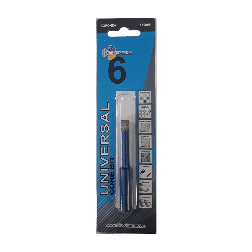 Коронка предназначена для сверления отверстий в керамике, кафеле, керамограните, граните, мраморе, стекло, бетон, кирпич. Предназначена для сухого сверления в безударном режиме, наличие технического воска в теле коронки способствует дополнительному увеличению ресурса. Хвостовик несъёмный, под зажимной патрон. Подходит для дрели и шуруповерта